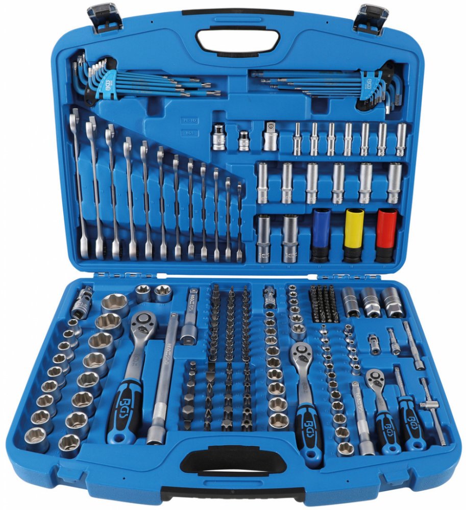 Kvalitní gola sada 1/2", 3/8", 1/4" obsahuje ráčny, nástrčné klíče s profilem Super Lock, bity, ráčnové klíče a další.
