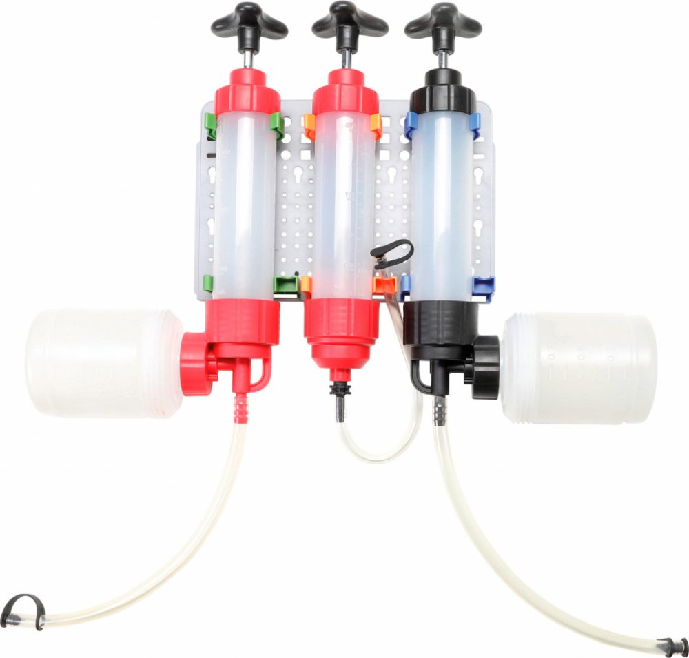 pro odsávání, opětovné plnění a stáčení vhodné pro brzdovou kapalinu, nemrznoucí kapalinu chladicího systému, kapalinu servořízení, převodový olej, motorový olej rozsah dodávky: ruční pumpa kapaliny 350 ml se zpětným ventilem a hadicovou spojkou vč. hadice 11 x 300 mm plastová trubka 9,8 x 300 mm rozměry: 381 x 75 x 75 mm 2 kapalina ruční pumpy 350 ml s funkcí stáčení a hadicovou spojkou pro nasávání tekutin do šroubované 1l nádržky nebo do libovolné jiné nádržky vč. hadice 13 x 370 mm & 15 x 150 mm rozměry (vč. 1 l zásobníku): 381 x 225 x 102 mm s užitečnými a snadno sestavitelný plastový nástěnný držák není vhodný pro hořlavé kapaliny, jako je palivo materiál: PP (polypropylen)