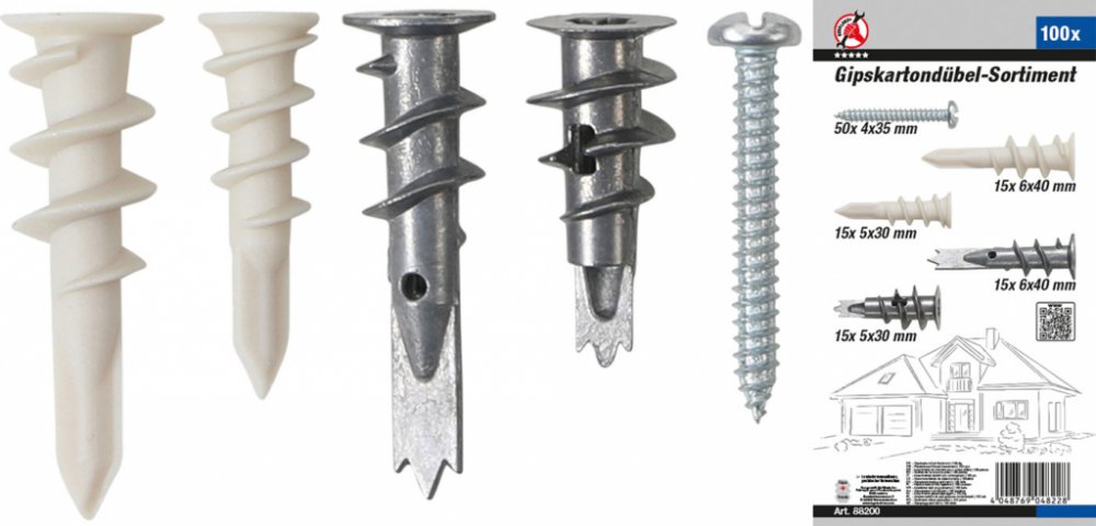 BGS Diy BGS 88200, Sada hmoždinek do sádrokartonu | 100dílná