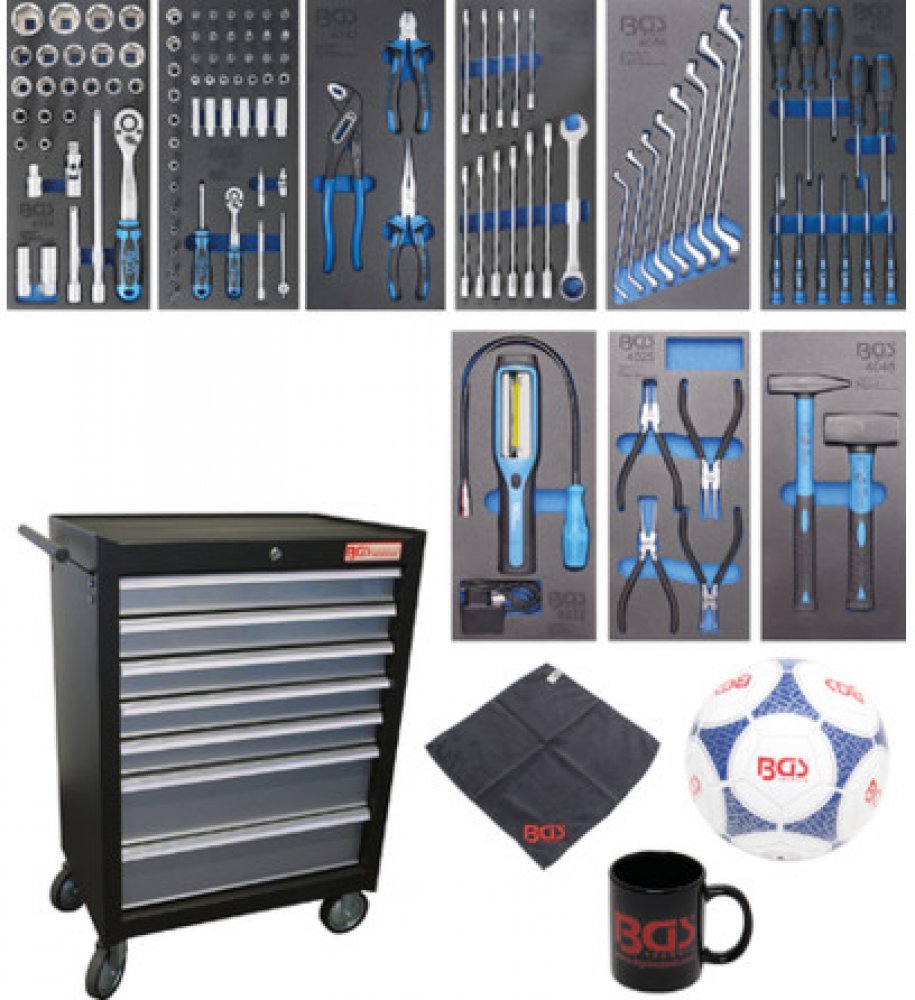 sada 1/2" | 27 ks (BGS 4126) Vložka - gola sada 1/4" | 50 ks (BGS 4127) Vložka - sada klíčů 8 ÷ 19 mm | 12 ks (BGS 4128) Vložka - Sada šroubováků | 11 ks (BGS 4131) BGS® Football (BGS BALL) Hadřík z mikrovlákna (BGS CLOTH) BGS® Coffee Cup (BGS CUP)