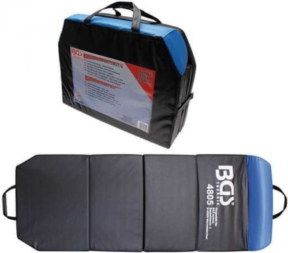 Velmi pohodlné a praktické lehátko pro práci pod vozidlem. Díky polstrování a hlavové opěrce poskytuje ležícímu mechanikovi dostatek pohodlí, povrch ze snadno omyvatelného materiálu lze rychle vyčistit.Skládací konstrukce umožňuje snadné skladování, díky držadlům se podložka snadno přenáší. Technické parametry:- Délka: 1200 mm- Šířka: 435 mm- Tloušťka: 35 mm- Hmotnost: cca 1.14 kg