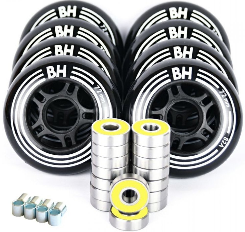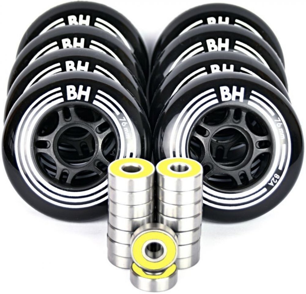 In-line komplet obsahuje komfortní, ale zároveň velmi rychlá kolečka pro fitness bruslení, inovovaná PU směs „Black“ prodlužuje životnost a zlepšuje přilnavost na všech typech povrchů. Ložiska vyrobená z vysoce jakostní chromové oceli – jsou vybavena oboustranným těsněním zaručujícím nízké tření, ochranu před prachem i vlhkostí a současně možností ložiska čistit.