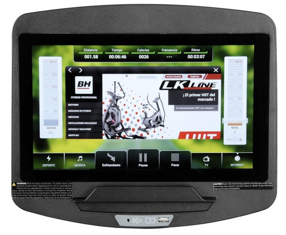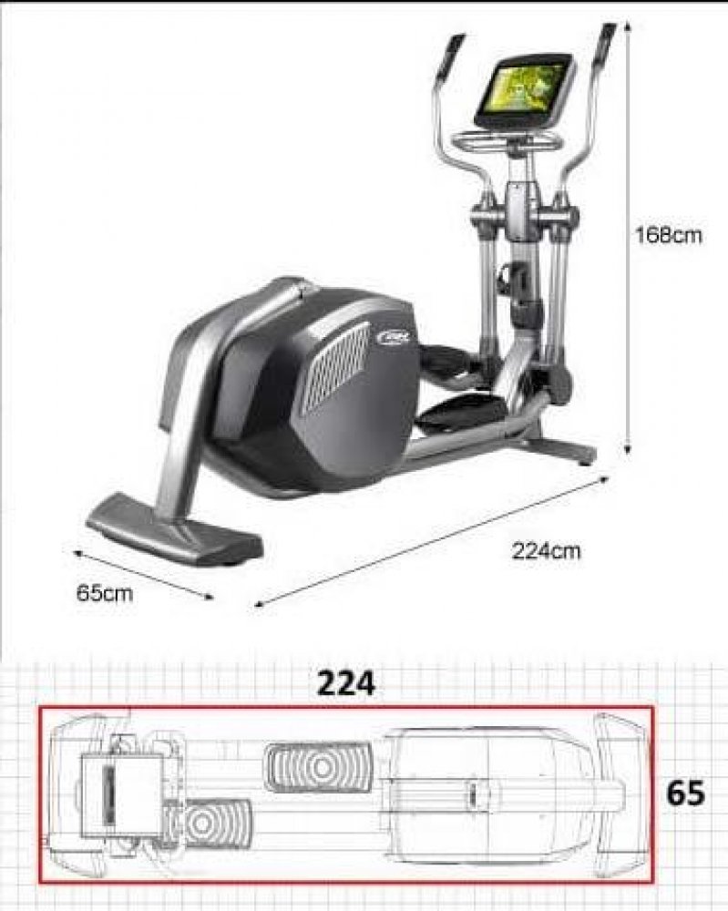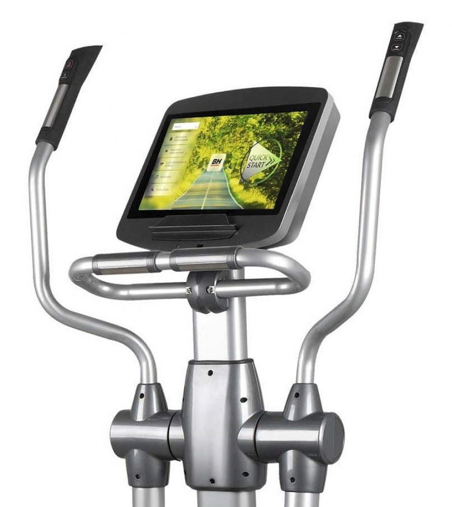 Eliptický trenažér indukční, s pogramy středové uložení i kloubní spoje s ložisky délka kroku 46 cm, rozteč pedálů 4 cm wifi, 16" grafický dotykový displej nosnost 190 kg, záruka 3+5 let, servis doma