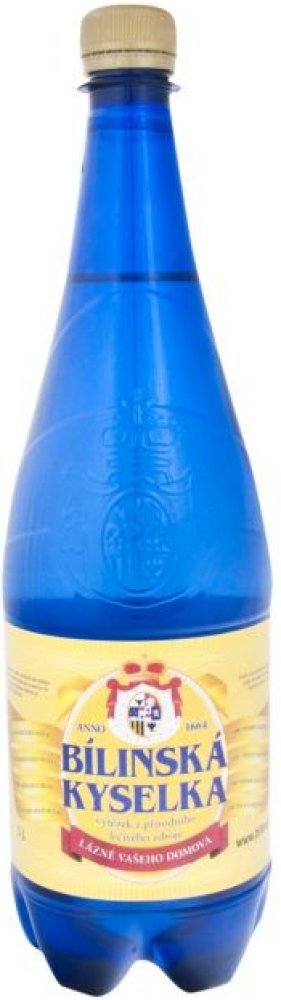 Bílinská kyselka 1 l. Pitný lázeňský pramen s nejlepšími parametry pro domácí a lázeňské pitné kúry. Alkalický, hydrogenuhličitanový, přirozeně perlivý pramen s vysokou mineralizací (5-7 gramů na 1 litr). Z kationtů obsahuje zejména sodík, draslík, vápník, hořčík a železo, z aniontů chlorid, síran, fluorid a hydrogenuhličitan. Kvalita a stabilita pramene umožnují stáčení bez úprav již více než 350 let. Je přírodním léčivým zdrojem (PLZ) dle Ministerstva zdravotnictví ČR. Bílinská je vynikající reprezentant unikátního a velmi žádaného alkalického pramene. Má pozitivní vliv na odkyselení organizmu, překyseleného současným životním stylem: vlivem nesprávně upravované stravy, stresem, pobytem v uzavřených prostorech, apod. S úspěchem se užívá v před a pooperačních stavech a po namáhavých sportovních a fyzických aktivitách. Dále se užívá jako špičkový dietetický nápoj při diabetes melitus, také pro svůj blahodárný vliv na zažívací procesy (pálení žáhy, reflux). V pitných lázeňských kúrách se také používá pro nastolení rovnováhy kyselin a zásad v těle (otoky, poruchy látkové výměny, revmatismus) a v neposlední řadě také k inhalacím (rozpouštění hlenu). Je ideální na přípravu ovocných perlivých nápojů, na míchání s vínem a jako ideální nápoj pro gastronomii. Analýza: Přírodní, velmi silně mineralizovaná minerální voda přirozeně sycená, se zvýšeným obsahem fluoridů a lithia z přírodního léčivého zdroje. Kationty mg/l: Li+ 4,43, Na+ 1 720, Ca2+ 139,0, K+ 82,0, Mg2+ 41,8. Anionty mg/l: HCO3 - 4 370, SO4 ² - 626, Cl- 225, F- 5,58. Celková mineralizace 7 276 mg/l.