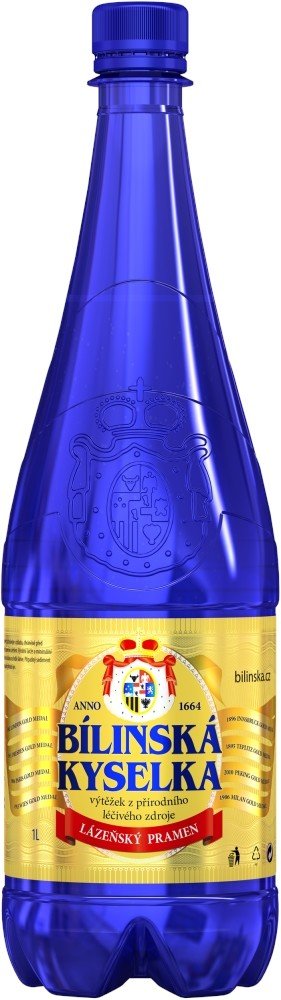 Bílinská kyselka 1 l. Pitný lázeňský pramen s nejlepšími parametry pro domácí a lázeňské pitné kúry. Alkalický, hydrogenuhličitanový, přirozeně perlivý pramen s vysokou mineralizací (5-7 gramů na 1 litr). Z kationtů obsahuje zejména sodík, draslík, vápník, hořčík a železo, z aniontů chlorid, síran, fluorid a hydrogenuhličitan. Kvalita a stabilita pramene umožnují stáčení bez úprav již více než 350...