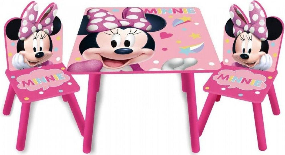 Dětský stůl s židlemi s roztomilou animovanou postavičkou Myškou Minnie z dílny Walt Disney potěší všechny děti. Barevný stůl s židlemi je nezbytnou součástí dětského pokojíčku. Známá kreslená postavička rozzáří každý pokojíček a zároveň vytvoří místo na hraní, kreslení, relaxaci.