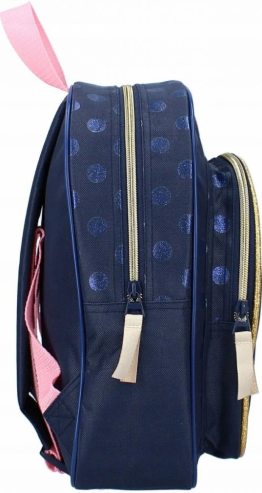 Veselý dětský batoh v modrém provedení s motivem Myšky Minnie. Nádherné barvy, pevné a kvalitní provedení, snadné zapínání, to je to, co ocení nejen děti, ale i rodiče. Vhodný na výlety i do školky.