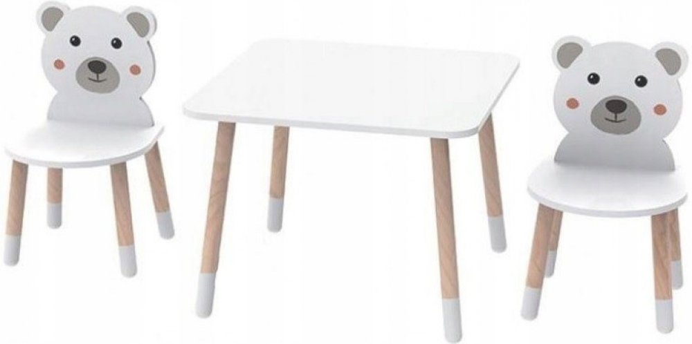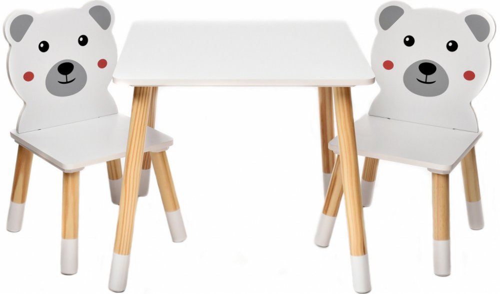 Nádherný dětský stůl v bílém provedení s židličkami s motivem medvídků. Stoleček je ideálním místem pro hraní, malování, občerstvení nebo pro posezení s kamarády. Originální doplněk do dětského pokoje, praktický, přizpůsobený dětským potřebám. Nábytek je stabilní, snadno se čistí.