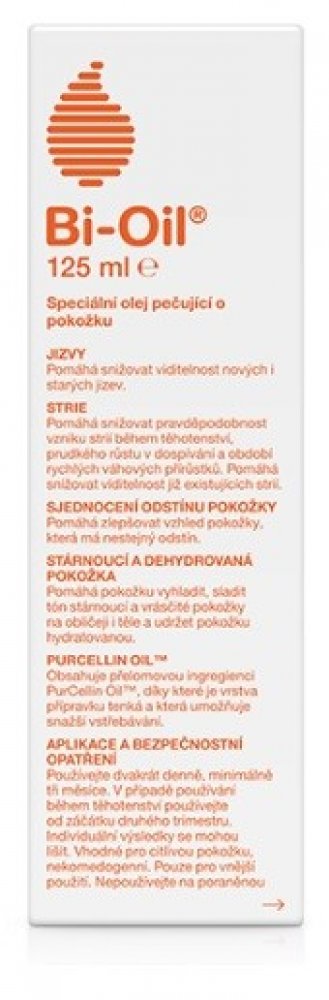 100% přírodní složení, klinicky potvrzeno zlepšení vzhledu jizev i strií. Unikátní složení je velmi účinné také pro sjednocení tónu pokožky, stárnoucí a dehydrovanou pokožku. Je vhodný pro citlivou pokožku, nekomedogenní, poskytuje stejný efekt jako Bi-Oil Pečující olej.