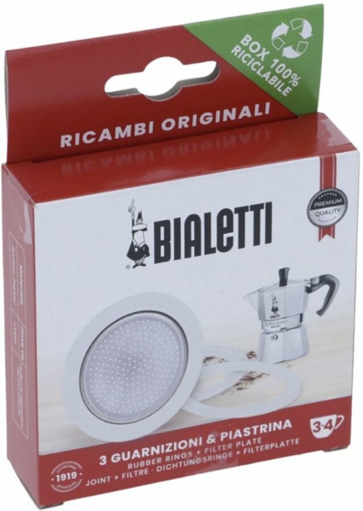 Bialetti sada těsnění pro moka konvičku na 3/4 šálkyPravidelná výměna těsnění zajistí optimální těsnost vaší moka konvice a zabrání úniku vody nebo páry během přípravy kávy. Díky sadě tří kusů těsnění máte dostatečnou zásobu na delší období a nemusíte řešit častý nákup náhradních dílů. Hliníkové sítko v balení umožňuje kompletní výměnu, což zajistí čistou chuť kávy bez usazenin. Gumová těsnění pro...