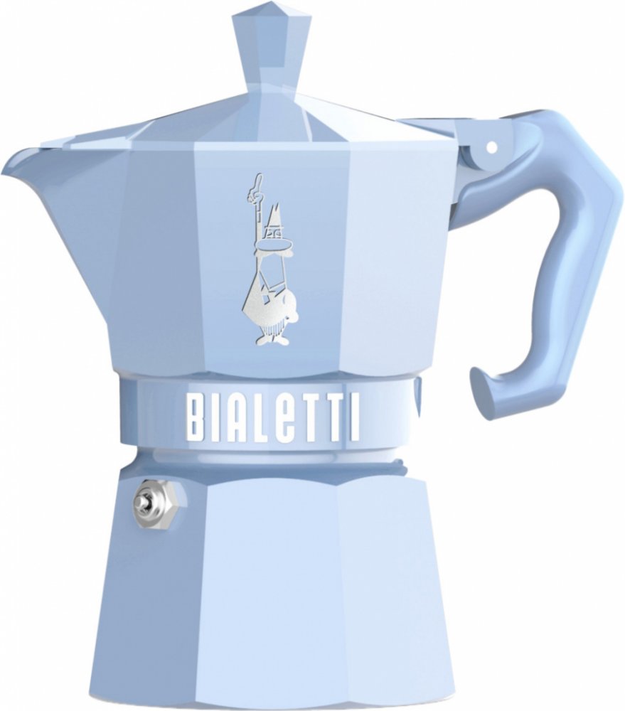 Typ produktu:Moka konvičkaBarva:ModráZákladní materiál:HliníkKapacita v šálcích:3 hrnkůMateriál rukojeti:TermoplastikVhodné pro indukční desky:AnoVhodný do myčky:NePočet kusů v balení:1 kusů Při vývoji produktu Moka Exclusive byl pečlivě zvážen každý detail. Vysoce lesklé barvy, silikonové těsnění a ochranný povlak uvnitř konvice. Knoflík ve tvaru diamantu a tvar rukojeti připomínají Moka z 60. le...