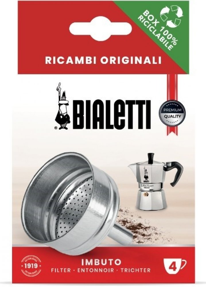 Náhradní trychtýř pro hliníkové moka konvice Bialetti ve velikosti na 4 šálky, např. modely Moka Express, Dama či Moka Melody.