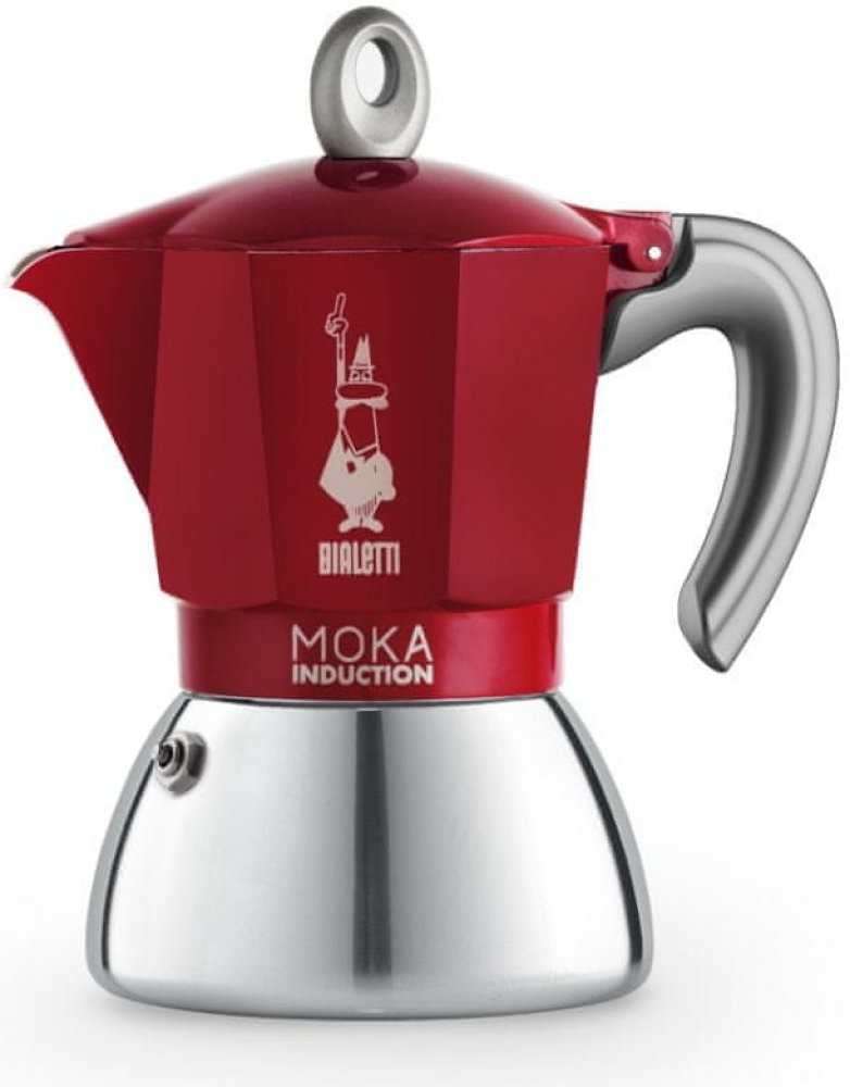 New Moka Indukce je novou modelovou sérií moka konviček z dílen celosvětově proslulé italské firmy Bialetti. Disponuje kompatibilitou s indukčním ohřevem, díky dvouvrstvému provedení zásobníku se však současně pyšní i excelentní schopností sběru patiny tak jako moka konvičky z hliníku. Zatímco vnější část konvičky je totiž vyrobena z nerezové oceli AISI 430, její vnitřní část pokrývá právě hliníková vrstva, která umožňuje sbírat patinu s maximální efektivitou. Výhodu představuje rovněž přítomnost patentovaného ventilku Bialetti pro bezpečnost ohřevu a snadné čištění, přičemž za zmínku stojí i rukojeť z tepelně odolného polyamidu 66. Model v červené barvě.