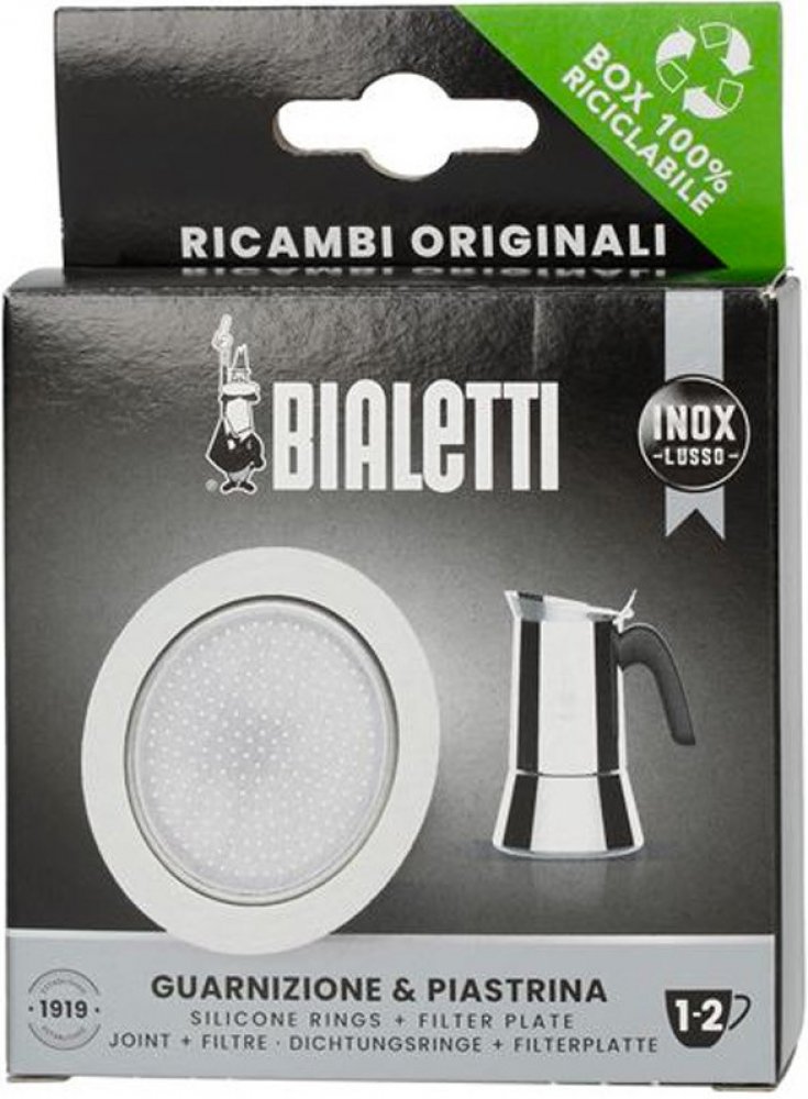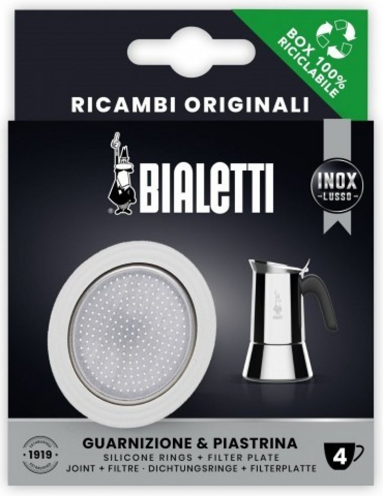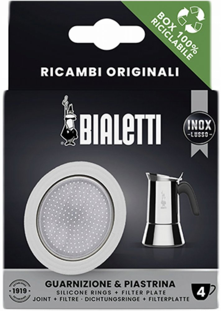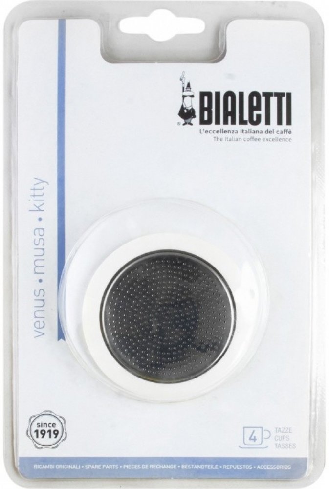 Náhradní těsnění a filtr pro moka konvičky Bialetti Venus a New Venus. Jedná se o originální náhradní díly Bialetti.