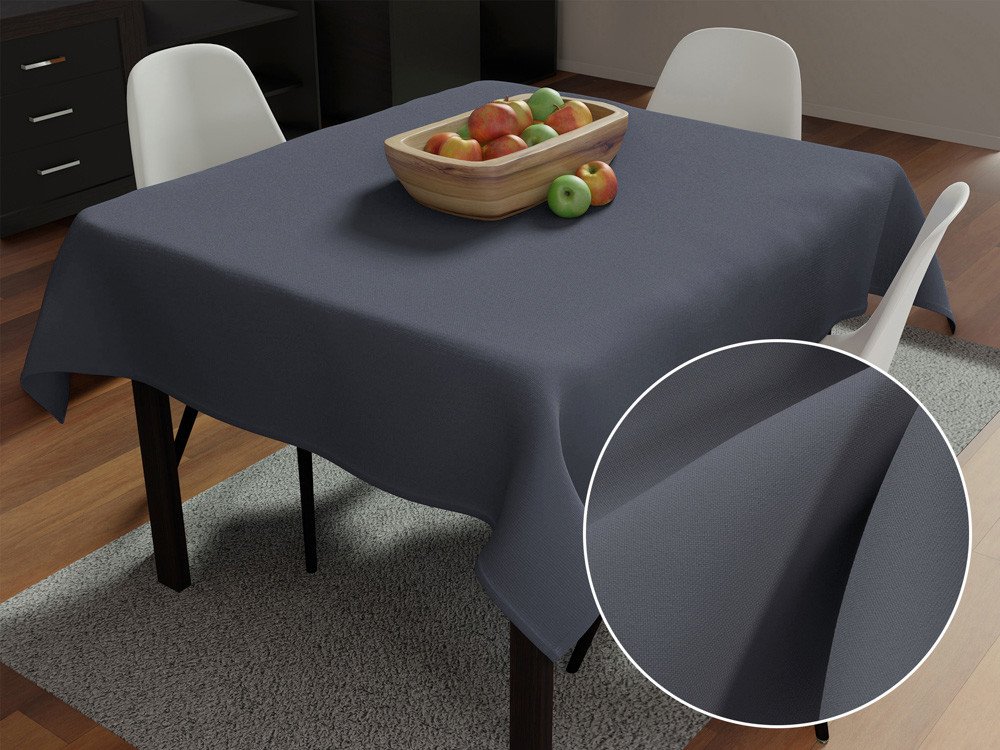 Jednobarevný dekorační čtvercový ubrus na jídelní stůl v tmavě šedé barvě, vyrobený z kvalitní hladce tkané 100% polyesterové látky Rongo.