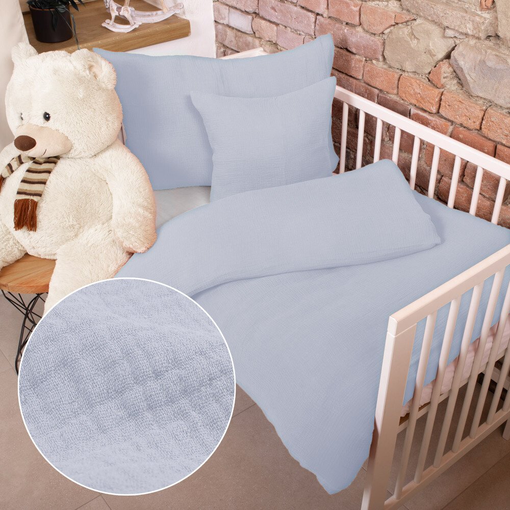 Dětské mušelínové ložní povlečení Nature v světle modrošedé barvě.