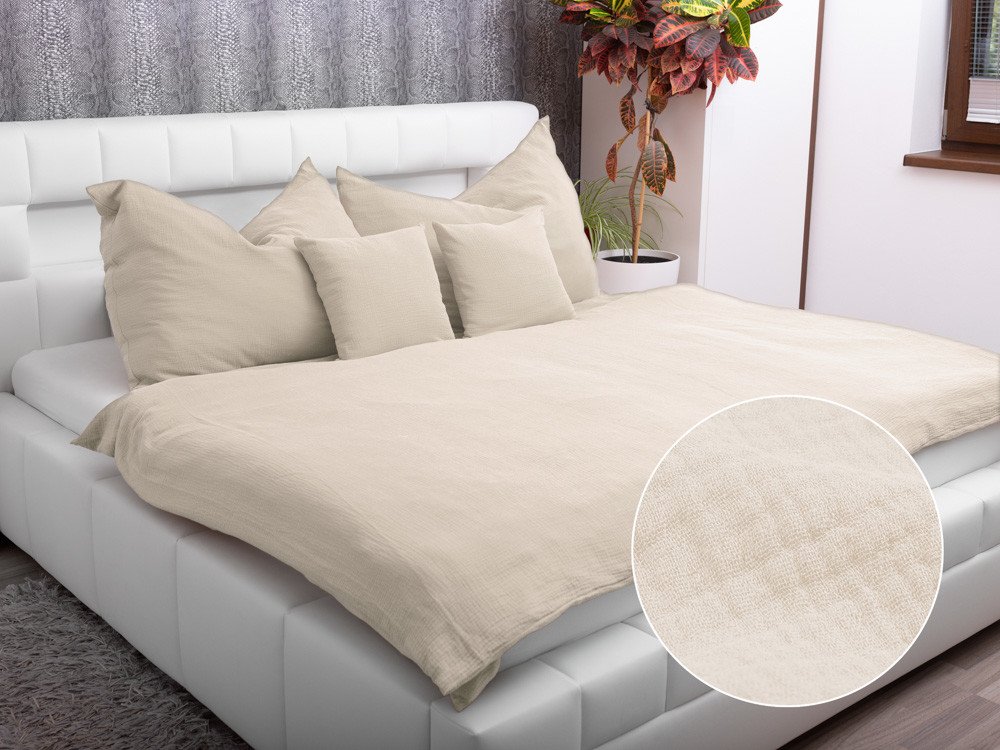 Mušelínové ložní povlečení Nature v krémové barvě.