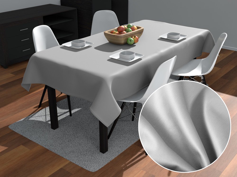 Obdélníkový bavlněný saténový ubrus na stůl v světle šedé barvě. Je ušitý ze saténové látky, tkané z velmi jemných česaných vláken bavlny, které dodávají látce vysokou pevnost a přirozeně lesklý vzhled. Ubrus dodáváme kompletně obšitý.