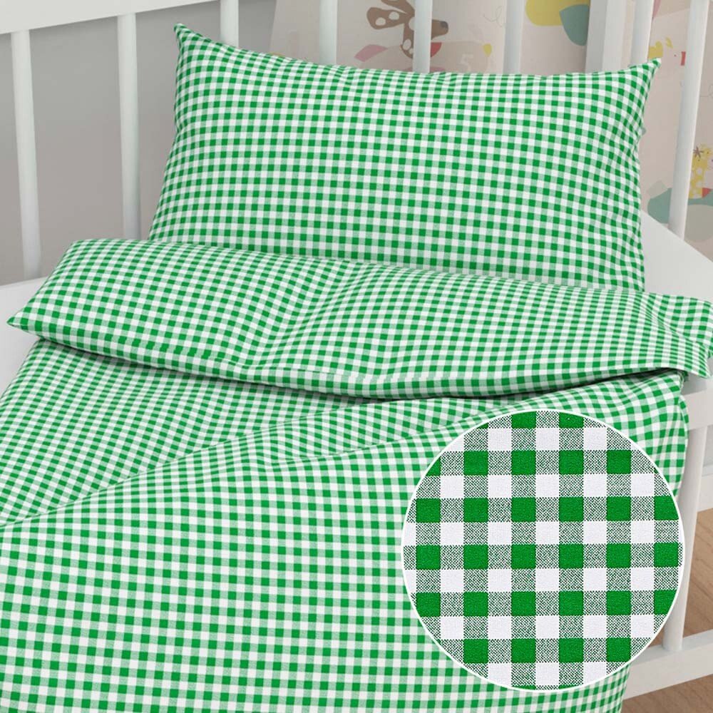 Dětské bavlněné povlečení do postýlky se vzorem zelených a bílých kostiček o velikosti cca 1 x 1 cm. Je ušité z hustě tkaného 100% bavlněného plátna s certifikátem zdravotní nezávadnosti Oeko-Tex 100. Bavlněná povlečení jsou vhodná pro celoroční použití. Zapínání je na zip.