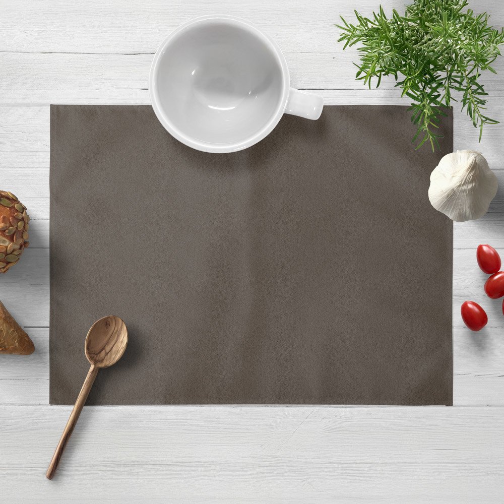 Dekorační prostírání na jídelní stůl v hnědošedé barvě, vyrobené z kvalitní oboustranné látky Blackout.
