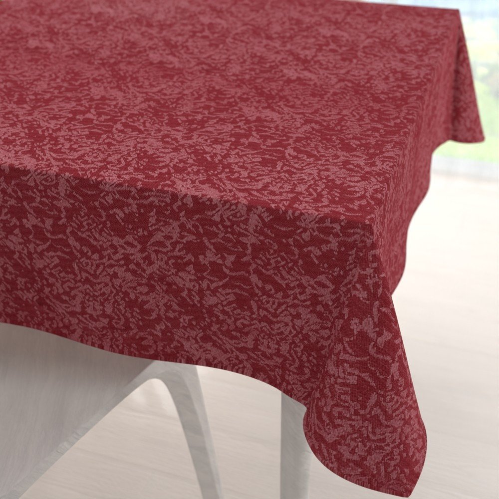 Vínově červený teflonový čtvercový ubrus na jídelní stůl s efektním lesklým vzorem ve stylu benátského štuku, vyrobený ze 100% polyesterové látky s vodoodpudivou a nešpinivou teflonovou úpravou. Je stálobarevný, nesráží se a velmi snadno se udržuje. Okraje ubrusu jsou zataveny do tvaru malých obloučků - viz. detailní foto, na přání můžeme obšít klasickým rovným stehem.