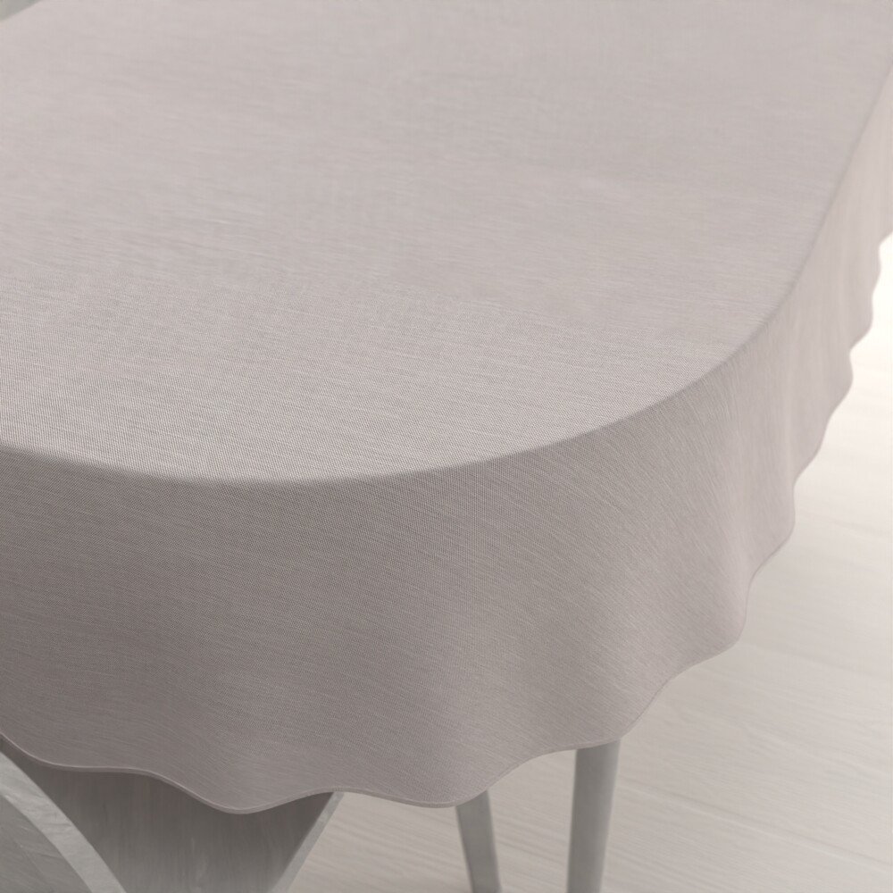Teflonový oválný ubrus na jídelní stůl, v režné béžové barvě, vyrobený ze 100% polyesterové látky s vodoodpudivou a nešpinivou teflonovou úpravou. Je stálobarevný, nesráží se a velmi snadno se udržuje. Okraje ubrusu jsou zataveny do tvaru malých obloučků - viz. detailní foto, na přání můžeme obšít klasickým rovným stehem.