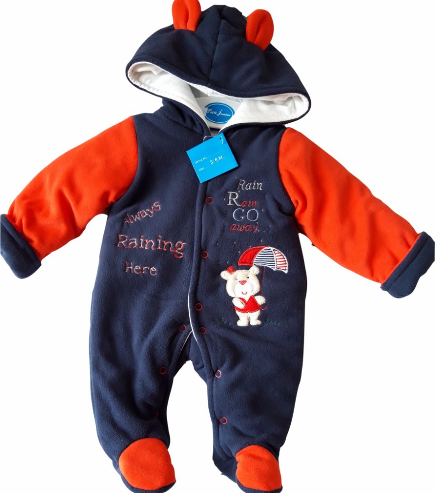 zateplený kojenecký overal s kapucí, zapínání na druky