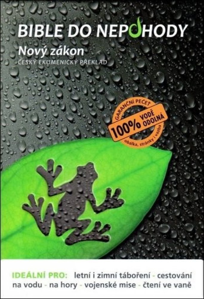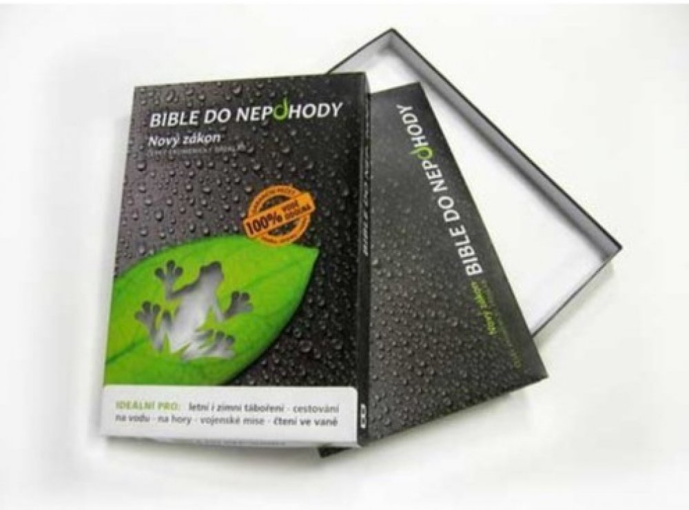 Tato "nepromokavá" Bible je vytištěna na speciálním voděodolném papíře. Je určena všem, kdo rádi táboří a cestují, ocení ji zvláště vodáci a milovníci vodních sportů.