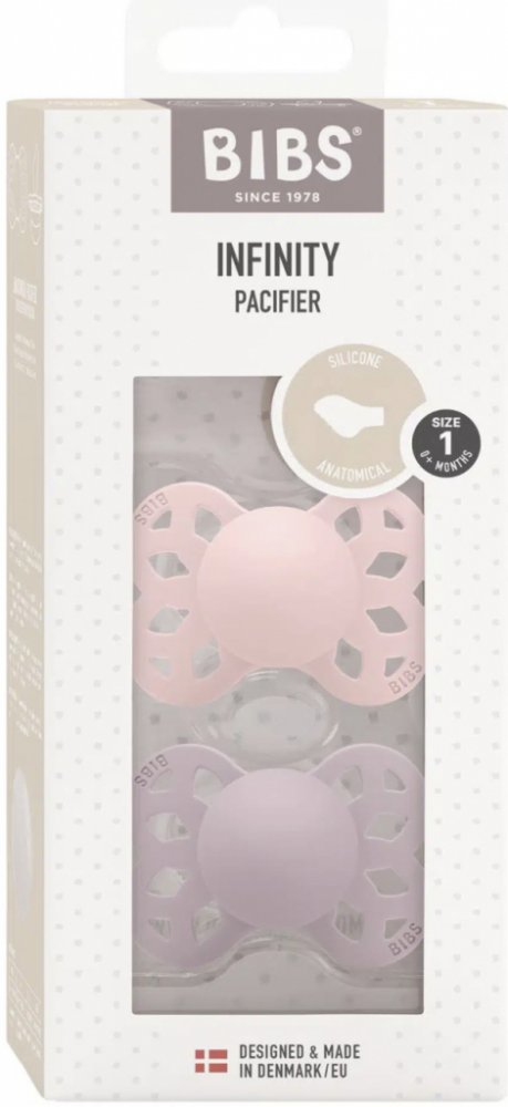 BIBS dobývajú celý svet. Jednoduché a štýlové. Ikonické cumlíky navrhnuté a vyrábané v Dánsku už od roku 1978. Ich minimalistický škandinávsky dizajn a široký farebný výber sú pre BIBS cumlíky typické. Všetky BIBS produkty sú garanciou najvyššej kvality detského sortimentu. BIBS Infinity je exkluzívny ortodontický cumlík anatomického tvaru s jedinečným dizajnom prepletených kruhov, ktoré symbolizujú kolobeh života a nekonečnosť. Dokonalá súhra čistého minimalizmu, elegancie a jemnosti. Anatomicky tvarovaná sacia časť je vyrobená zo 100%25-ného medicínskeho silikónu najvyššej kvality a vďaka jej zúženému tvaru v oblasti zhryzu je na zúbky a ďasná vyvíjaný minimálny tlak, čím je zachovaný ich prirodzený vývoj. Cumlík je navrhnutý tak, aby nedráždil citlivú pokožku bábätka. Zloženie: Sacia časť: 100%25 silikón najvyššej kvality Ostatné časti: polypropylén (PP) Bez BPA, PVC, ftalátov a iných škodlivých látok. Vyrobené v Dánsku. V súlade s európskym štandardom EN 1400+A2. Veľkosti: BIBS Infinity cumlíky sú k dispozícii v 2 veľkostiach v symetrickom aj anatomickom tvare. Veľkosť 1: 0 – 6 mesiacov Veľkosť 2: 6 – 36 mesiacov