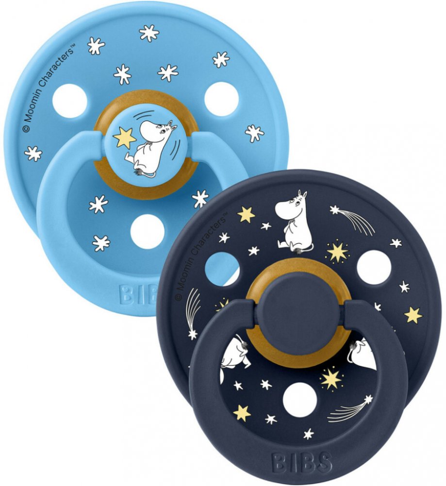 Objevte jedinečné dudlíky BIBS Moomin zdobené ikonickými pohádkovými postavičkami mumínků. Dudlíky pro děti 6-18m (velikost 2) s kulatou savičkou z přírodního kaučuku. Ikonická savička BIBS Colour dostává díky spolupráci Bibs x Moomin nový hravý vzhled. Dudlíky s oblíbenými postavičkami ze světa Moominů jsou navrženy tak, aby vykouzlily úsměv na tváři, uklidnili nejmenší a dodali nádech kouzelné magie do náročných dnů rodičovství. Bibs dobývají celý svět. Jednoduché a stylové. Sací část je vyrobena ze 100% přírodního kaučuku, který je mimořádně pružný a měkký zároveň, odolný vůči vytvoření trhlin a odštěpení malých kousků. Dudlík je navržen tak, aby nedráždil citlivou pokožku miminka. Kulatý kroužek s větracími otvory má klenutý tvar, téměř vůbec se nedotýká pokožky kolem úst, ta proto zůstává klidná, bez otisků a podráždění. Díky měkoučkému kaučuku a zabudovanému vzduchovému ventilu dítě dudlík lehce stlačuje a formuje v ústech, čímž je zachován přirozený vývoj patra, dásní a zoubků dětí. Proč děti i rodiče mají v oblibě dudlíky BIBS Colour? Extra lehoučký. Díky speciálnímu klenutému tvaru kroužku je minimalizován dotek dudlíku s pokožkou a nevznikají otisky a podráždění. Kulatý/třešničkový tvar sací části si často oblíbí i děti, které odmítají jiné tvary dudlíku. Dítě saje jen 100% přírodní bezpečný materiál - kaučuk vyrobený z mízy stromu Hevea. Výjimečná chuť přírodního kaučuku, děti jej přirozeně upřednostňují před syntetickými materiály. Stylový design v mnoha barevných provedeních. Vyrobeno v EU. Složení:Sací část: 100% přírodní kaučukOstatní části: polypropylen (PP) potravinářské kvality. Bez BPA, PVC, ftalátů a jiných škodlivých látek.Vyrobeno v Dánsku. V souladu s evropským standardem EN 1400+A2.