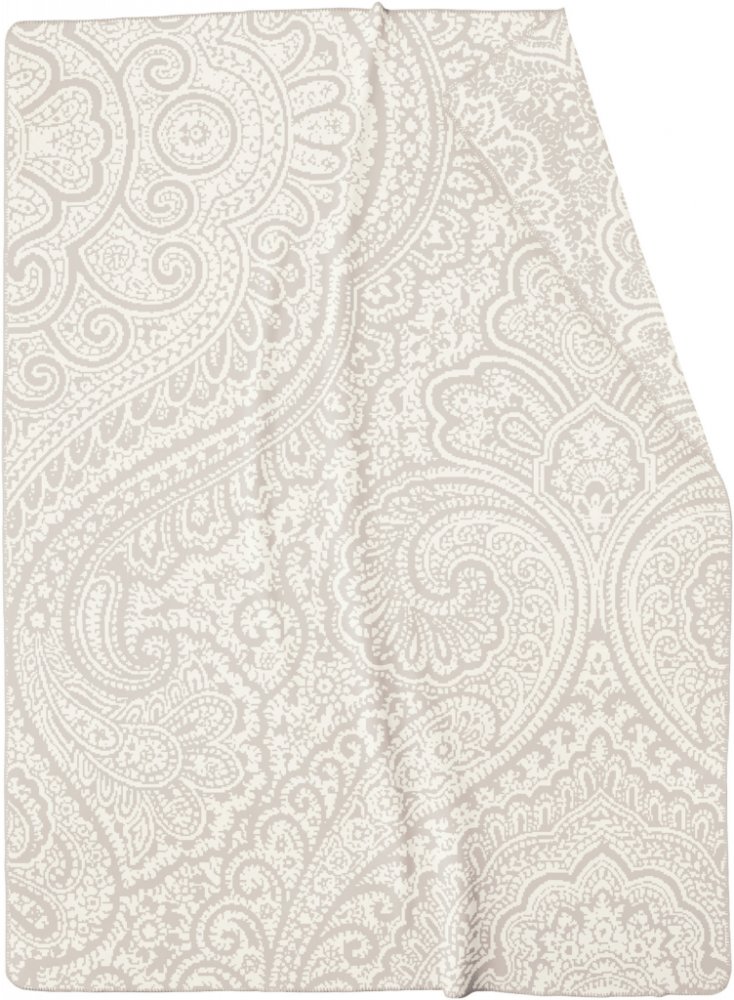 Paisley vzory jsou oblíbenou klasikou. Romantický vzor se uplatní na této plyšové dece ve světlém přírodním tónu s jemnou světle šedou. Tkaná deka je vyrobena z 58% vysoce kvalitní bavlny a 35% polyakrylu a je lemována moderním háčkovaným lemem. Snadno se udržuje, je šetrný k pokožce a příjemně hřeje. Také jako přikrývka na pohovku nebo přehoz.