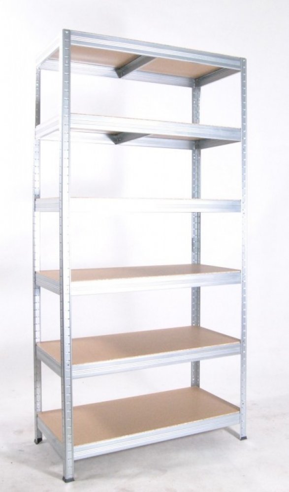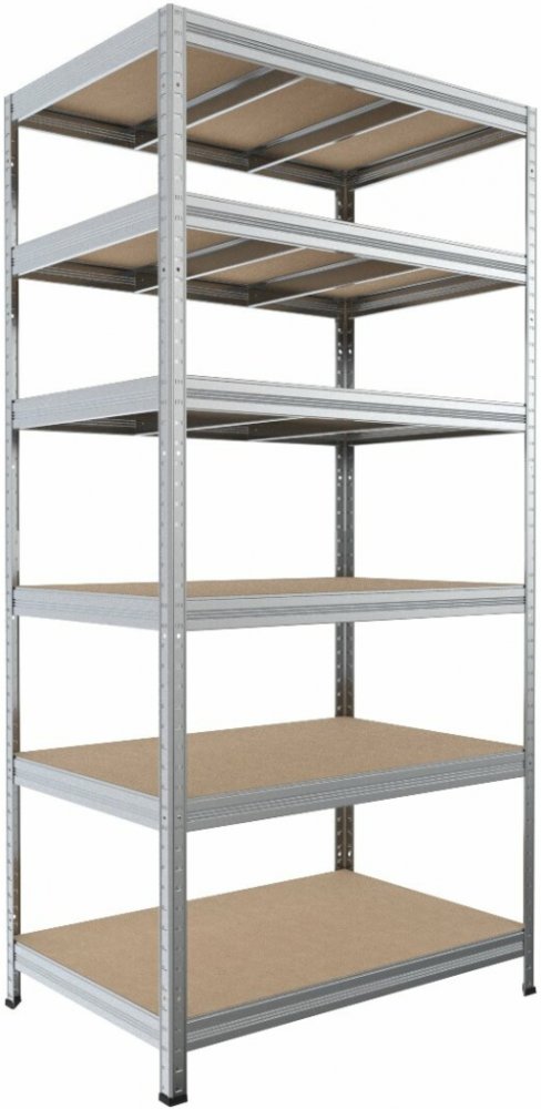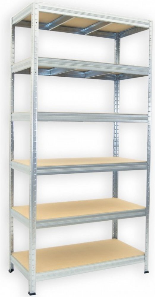 Kovový regál Biedrax 35 x 75 x 180 cm, pozink, 6 polic bílé lamino 12mm, nosnost 200 kg na polici