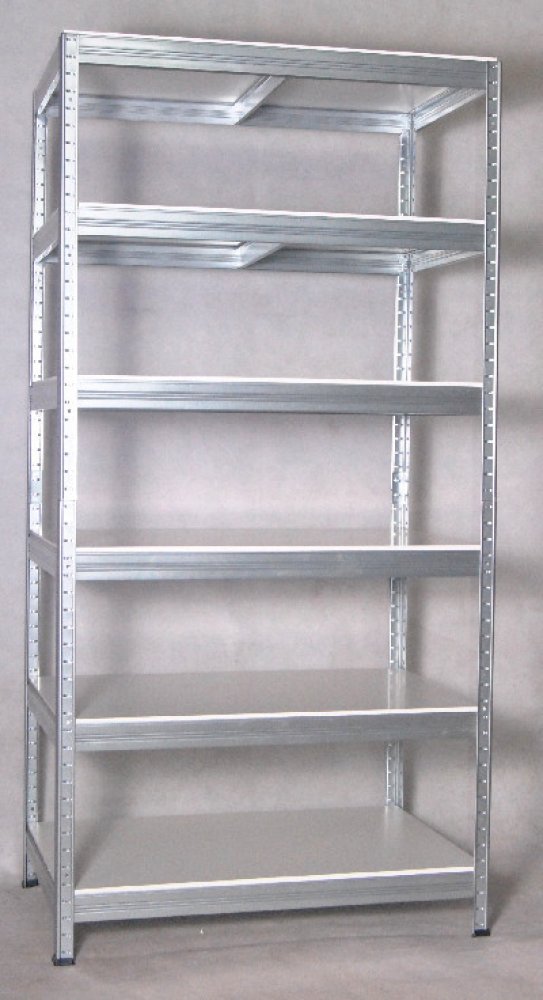 Regál s kovovou konstrukcí a police ze středně husté dřevovláknité desky - zkráceně MDF, tyto desky patří k přírodním materiálům. MDF - dřevovláknité desky se lisují pod vysokým tlakem a jsou na rozdíl od dřevotřískových polic pevnější. Ale pozor - tyto police MDF nejsou vhodné do vlhkého prostředí. Regál s velmi jednoduchým systémem montáže - nosníky zasunete do stojinek a poklepem dorazíte na doraz. Tímto je zaručena vysoká stabilita regálu, ale i rychlost montáže - žádné šroubky! Využití regálu: suché sklepy, půdy, sklady, prodejny, dílny, servisy, archívy atd..