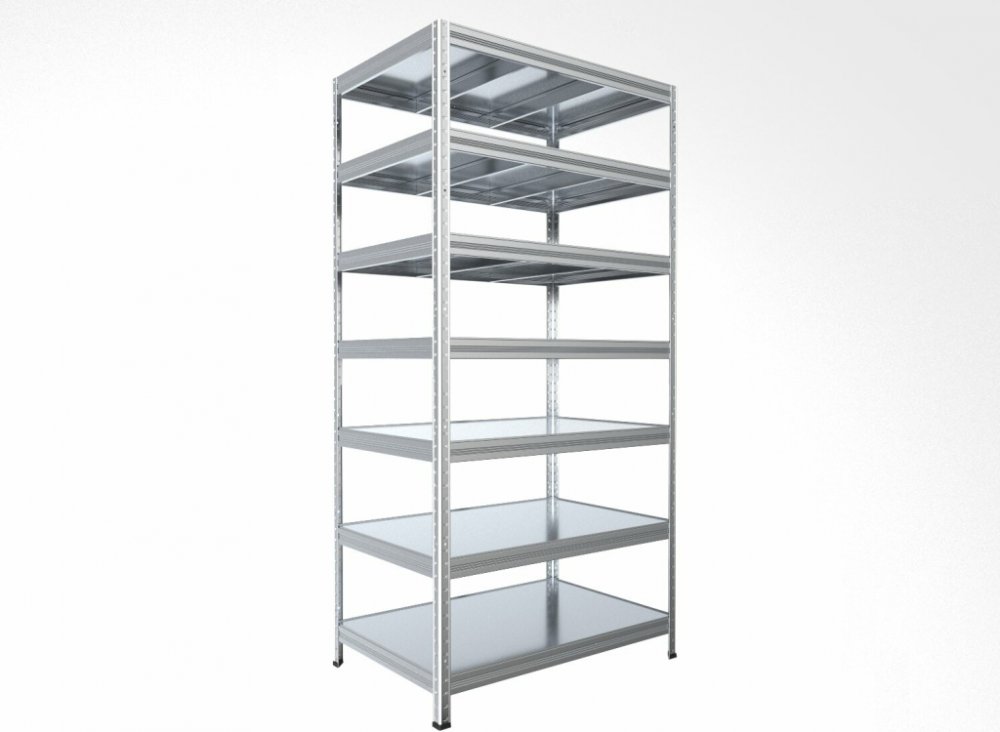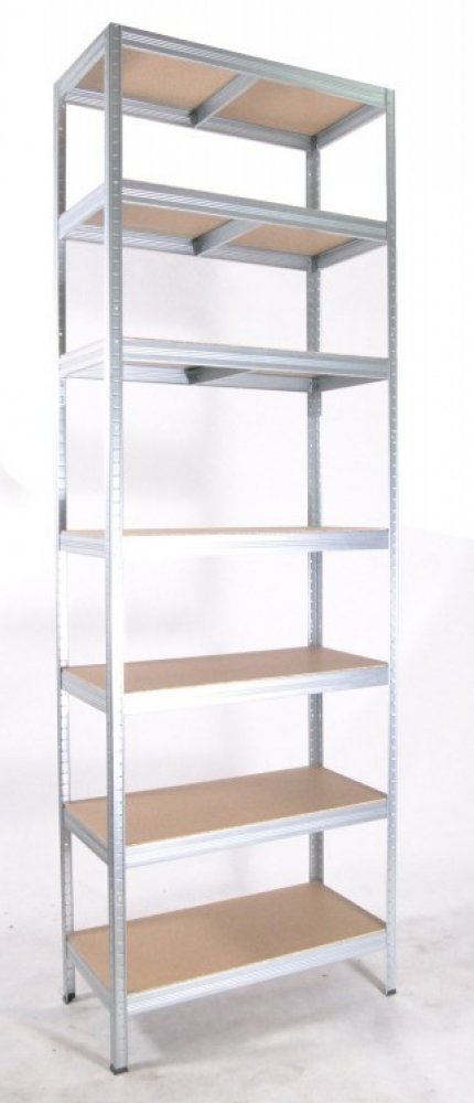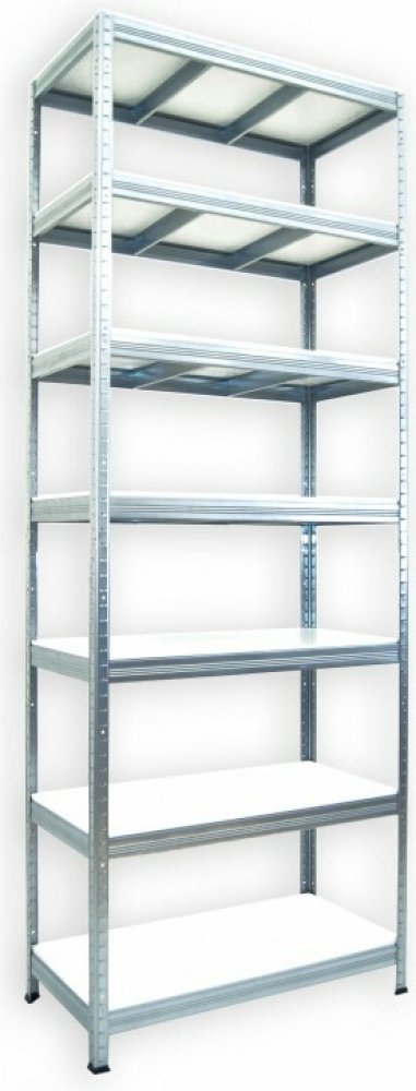 Kovový regál Biedrax 35 x 90 x 210 cm, pozink, 7 polic bílé lamino 12mm, nosnost 200 kg na polici