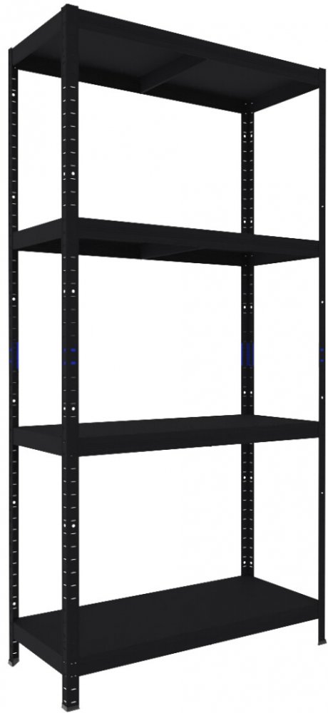 Bezšroubový regál Biedrax 40 x 60 x 180 cm, černý, 4 police plech, nosnost 100 kg na polici