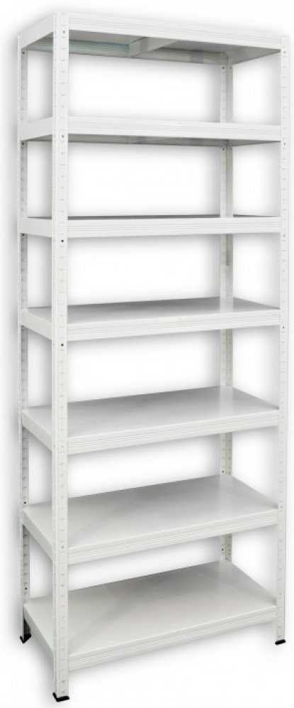 Bezšroubový regál Biedrax 40 x 80 x 240 cm, bílý, 7 polic plech, nosnost 100 kg na polici