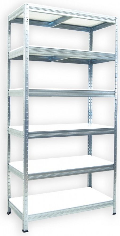 Pozinkovaný regál s kovovou konstrukcí, police bílá laminovaná dřevotříska 12 mm, ohraněná ABS hranou ze všech stran - police regálu jsou proto odolnější proti vlhkosti. Údržbu regálu můžete provádět vlhkým hadrem, ale nezapomeňte na konci otřít police do sucha. Jednoduchá a rychlá montáž regálu - nosníky zasunete do stojinek a poklepem dorazíte na doraz. Tímto je zaručena vysoká stabilita regálu, ale i rychlost montáže - žádné šroubky! Využití regálu: suché sklepy, půdy, sklady, prodejny, dílny, servisy, archívy atd..