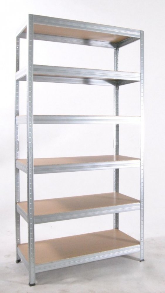 Kovový regál s policemi z dřevotřísky OSB 10 mm. Regály s OSB policemi jsou vhodné i do vlhkých prostor jako například přístřešky, pergoly či sklepy. Nejsou však určeny do exteriéru s přímým působením srážek. Unikátní bezšroubový systém montáže umožňuje rychlé sestavení – nosníky stačí zasunout do stojin a zajistit lehkým poklepem. Pevné spojení bez šroubů zaručuje tuhost celé konstrukce.