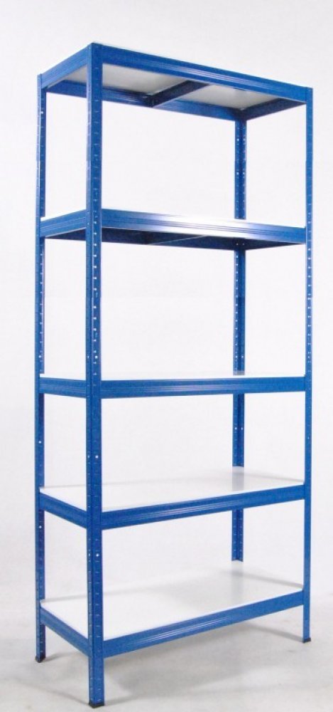 Kovový regál Biedrax 45 x 90 x 210 cm, modrý, 5 polic bílé lamino 12mm, nosnost 200 kg na polici