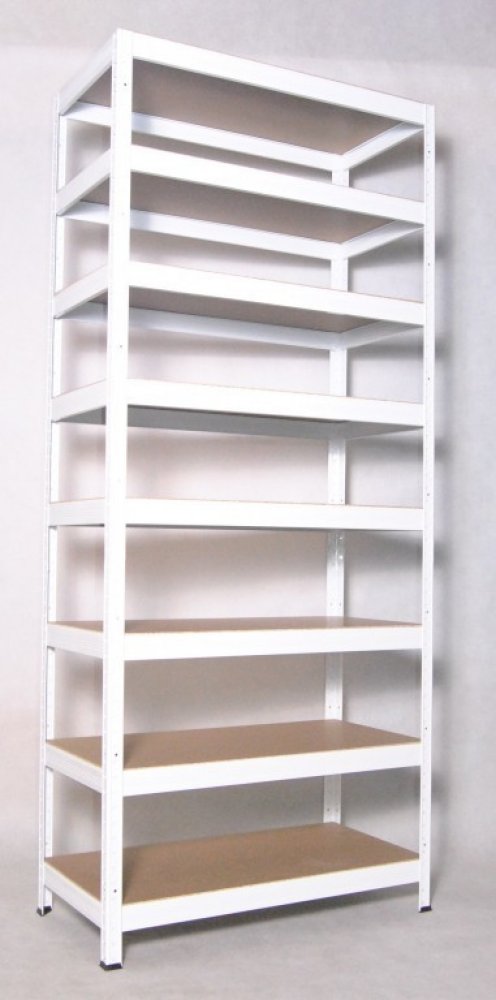 Kovový regál Biedrax 45 x 90 x 240 cm, bílý, 8 polic bílé lamino 12mm, nosnost 300 kg na polici