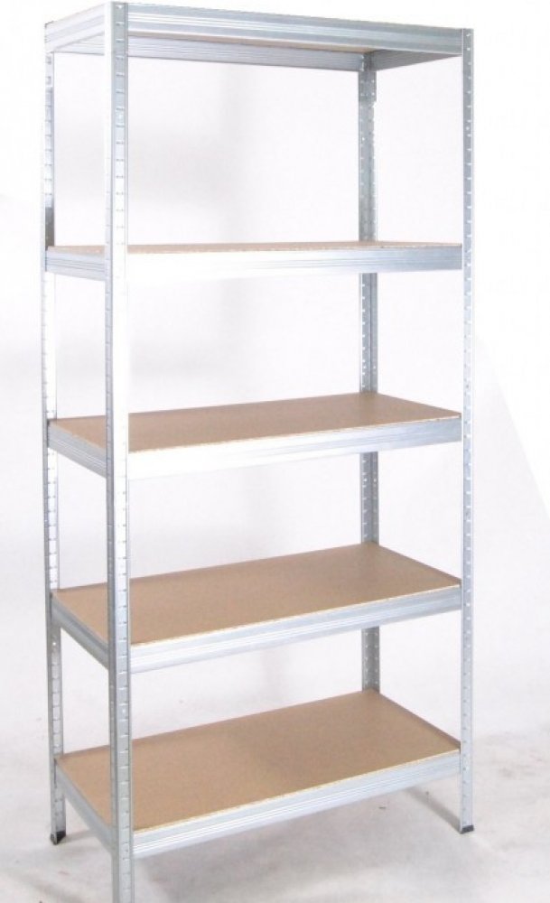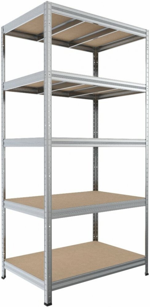 Kovový regál s policemi z dřevotřísky OSB 10 mm. Regály s OSB policemi jsou vhodné i do vlhkých prostor jako například přístřešky, pergoly či sklepy. Nejsou však určeny do exteriéru s přímým působením srážek. Unikátní bezšroubový systém montáže umožňuje rychlé sestavení – nosníky stačí zasunout do stojin a zajistit lehkým poklepem. Pevné spojení bez šroubů zaručuje tuhost celé konstrukce.