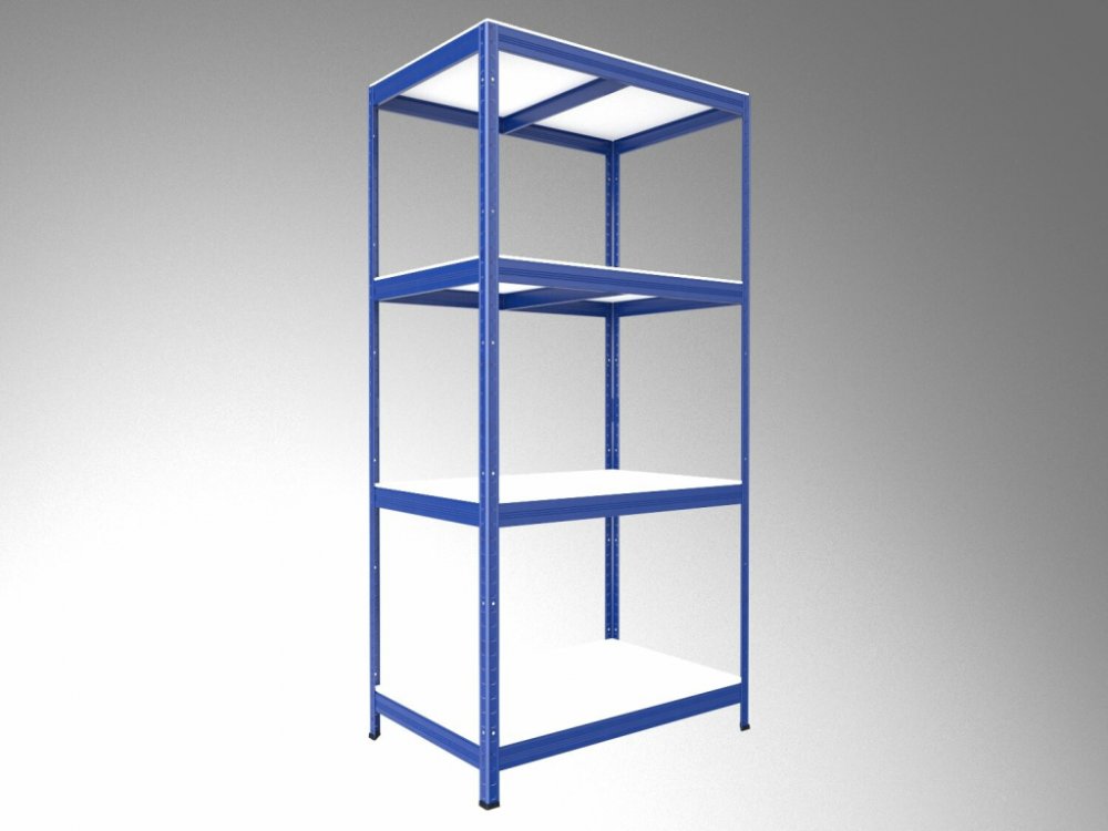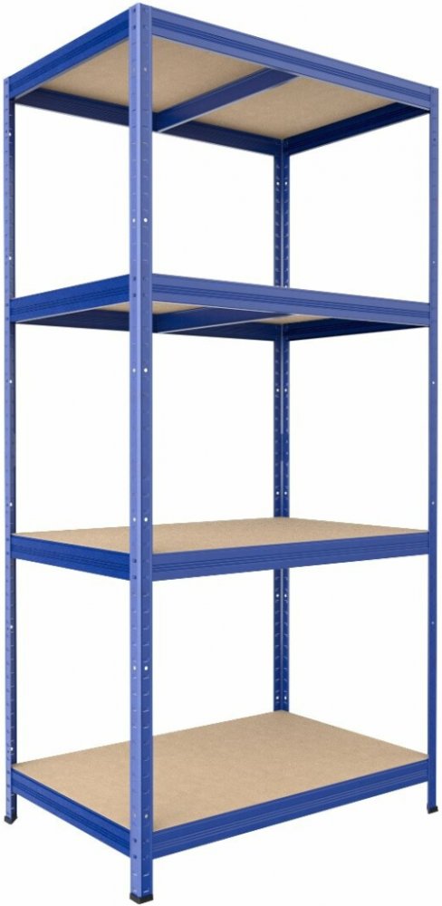 Kovový regál Biedrax 50 x 75 x 180 cm, modrý, 4 police OSB 10 mm, nosnost 200 kg na polici