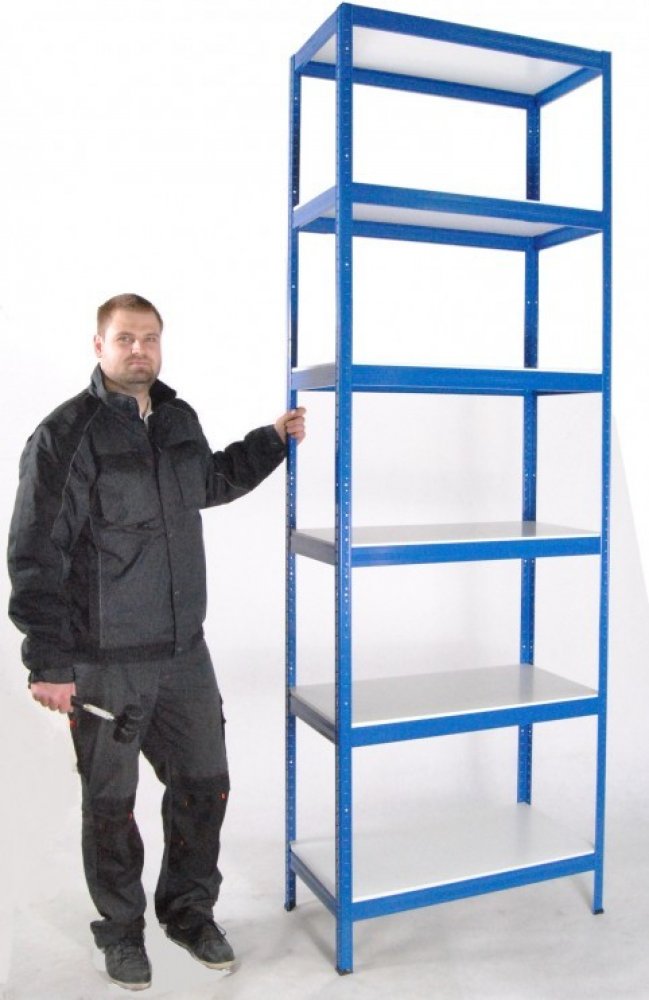 Regál do skladu Biedrax 50 x 75 x 270 cm, modrý, 6 polic bílé lamino 12mm, nosnost 200 kg na polici