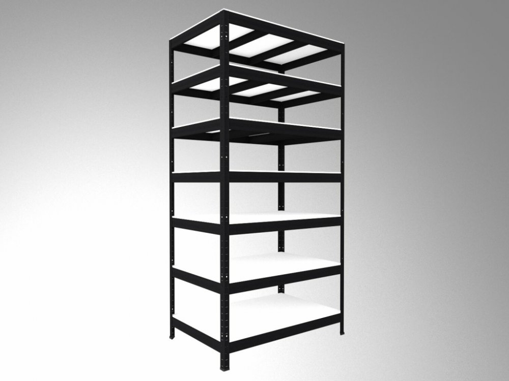 Policový regál Biedrax 50 x 90 x 240 cm, černý, 7 polic bílé lamino 12mm, nosnost 300 kg na polici
