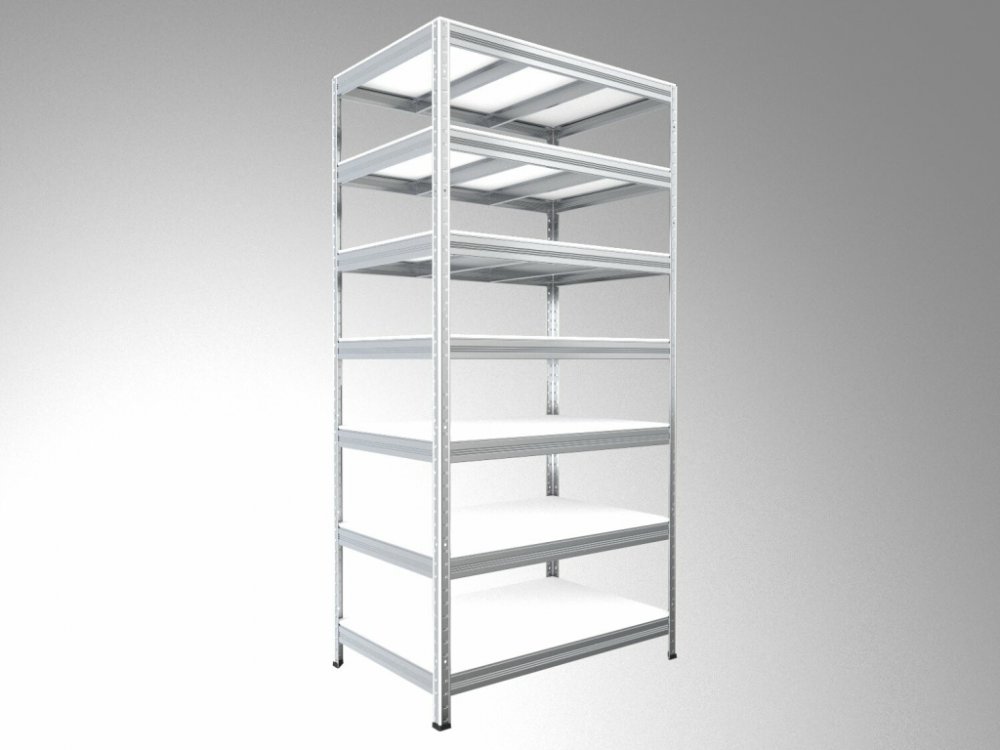 Pozinkovaný regál s kovovou konstrukcí, police bílá laminovaná dřevotříska 12 mm, ohraněná ABS hranou ze všech stran - police regálu jsou proto odolnější proti vlhkosti. Údržbu regálu můžete provádět vlhkým hadrem, ale nezapomeňte na konci otřít police do sucha. Jednoduchá a rychlá montáž regálu - nosníky zasunete do stojinek a poklepem dorazíte na doraz. Tímto je zaručena vysoká stabilita regálu, ale i rychlost montáže - žádné šroubky! Využití regálu: suché sklepy, půdy, sklady, prodejny, dílny, servisy, archívy atd..