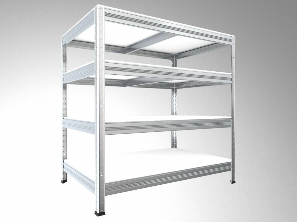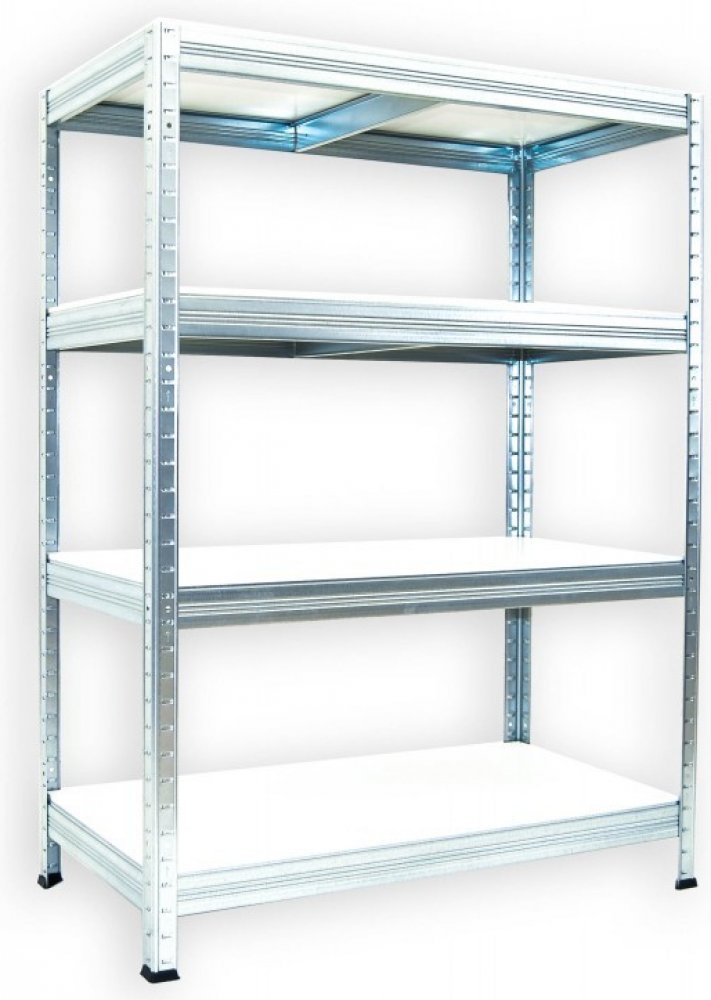 Pozinkovaný regál s kovovou konstrukcí, police bílá laminovaná dřevotříska 12 mm, ohraněná ABS hranou ze všech stran - police regálu jsou proto odolnější proti vlhkosti. Údržbu regálu můžete provádět vlhkým hadrem, ale nezapomeňte na konci otřít police do sucha. Jednoduchá a rychlá montáž regálu - nosníky zasunete do stojinek a poklepem dorazíte na doraz. Tímto je zaručena vysoká stabilita regálu, ale i rychlost montáže - žádné šroubky! Využití regálu: suché sklepy, půdy, sklady, prodejny, dílny, servisy, archívy atd..