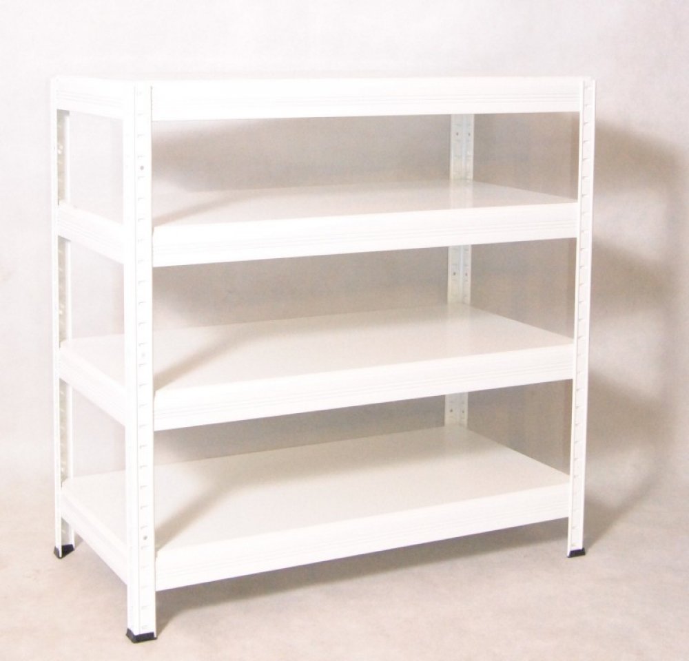 Regál s kovovou konstrukcí, police bílá laminovaná dřevotříska 12 mm, ohraněná ABS hranou ze všech stran - police regálu jsou proto odolnější proti vlhkosti. Údržbu regálu můžete provádět vlhkým hadrem, ale nezapomeňte na konci otřít police do sucha. Jednoduchá a rychlá montáž regálu - nosníky zasunete do stojinek a poklepem dorazíte na doraz. Tímto je zaručena vysoká stabilita regálu, ale i rychlost montáže - žádné šroubky! Využití regálu: suché sklepy, půdy, sklady, prodejny, dílny, servisy, archívy atd..