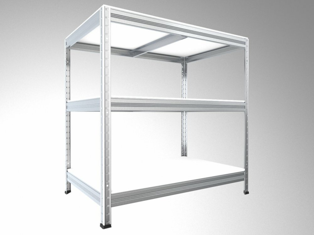 Pozinkovaný regál s kovovou konstrukcí, police bílá laminovaná dřevotříska 12 mm, ohraněná ABS hranou ze všech stran - police regálu jsou proto odolnější proti vlhkosti. Údržbu regálu můžete provádět vlhkým hadrem, ale nezapomeňte na konci otřít police do sucha. Jednoduchá a rychlá montáž regálu - nosníky zasunete do stojinek a poklepem dorazíte na doraz. Tímto je zaručena vysoká stabilita regálu, ale i rychlost montáže - žádné šroubky! Využití regálu: suché sklepy, půdy, sklady, prodejny, dílny, servisy, archívy atd..