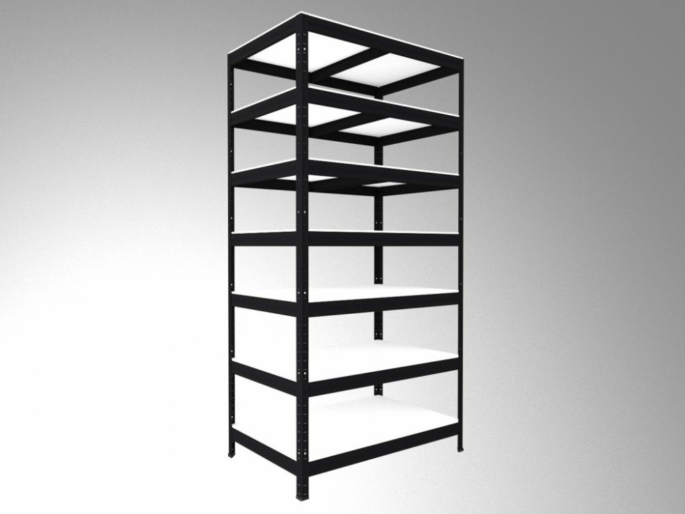 Policový regál Biedrax 60 x 90 x 240 cm, černý, 7 polic bílé lamino 12mm, nosnost 200 kg na polici