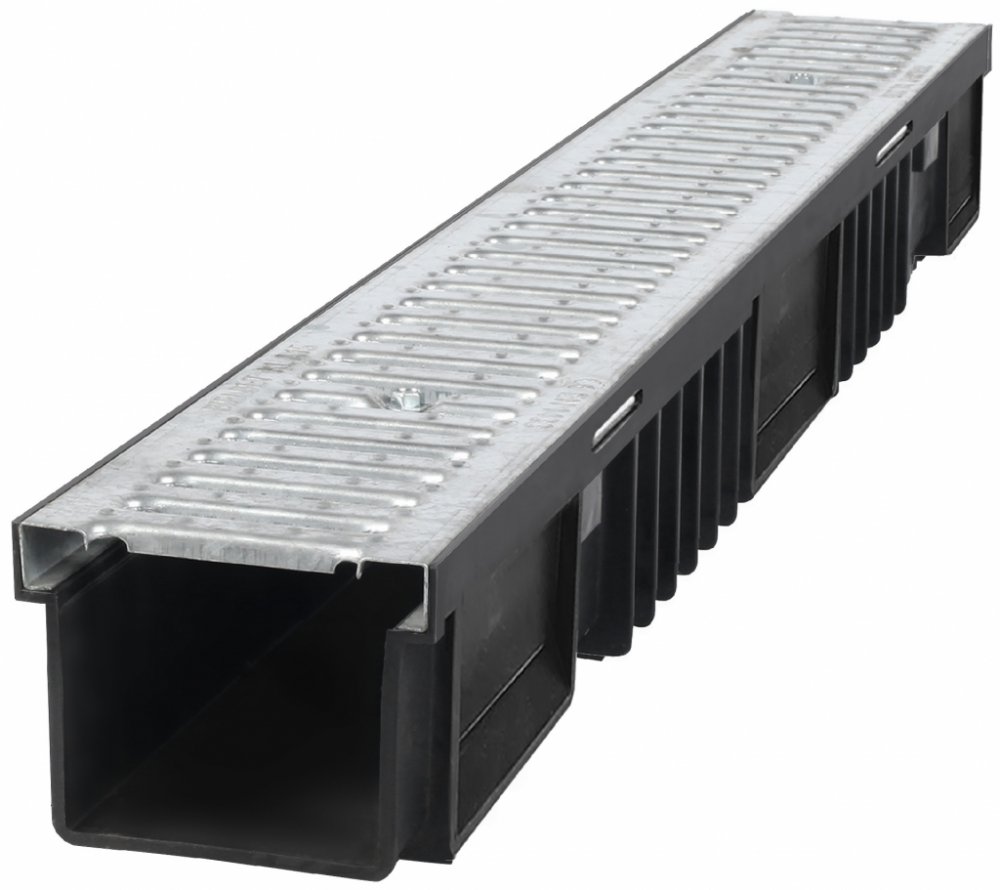 Odvodňovací plastový žlab BIELBET A15 s pozinkovanou mříží 1000 x 130 x 105 mm
